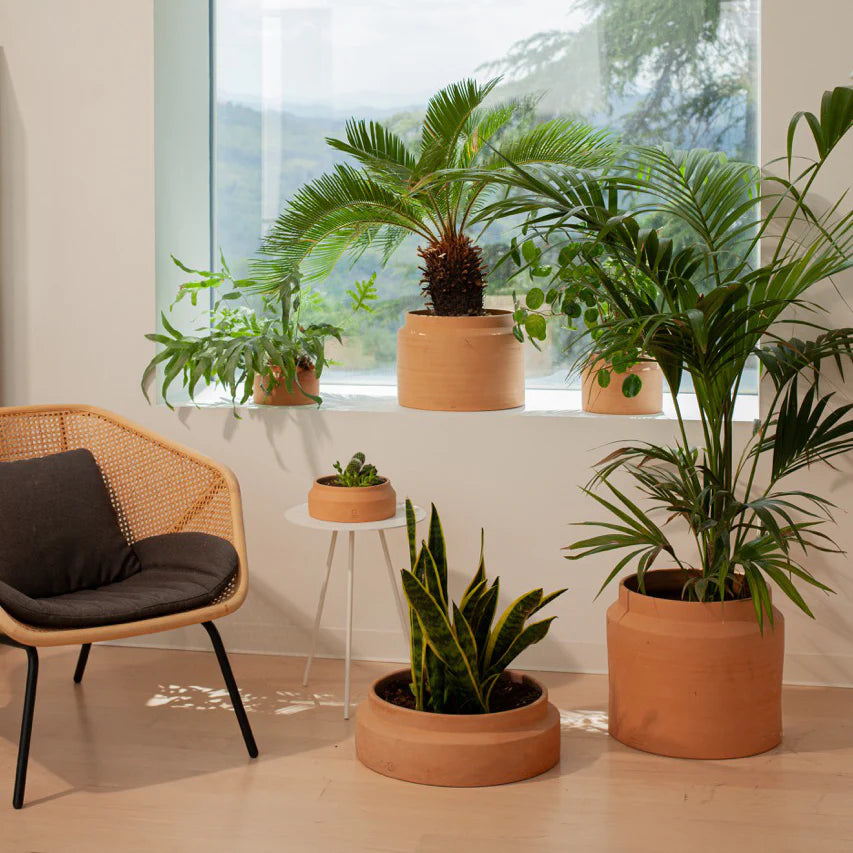 Wood, the raw material capable of defying time and projecting us into the relaxing atmospheres of the plant world; terracotta, whose rough beauty blends with any context, giving it a touch of materiality and elegance; glass, a precious resource that comes from sand and returns to be sand, preserving the ecosystem; and finally metals, versatile, recyclable, protective and resistant to corrosion.